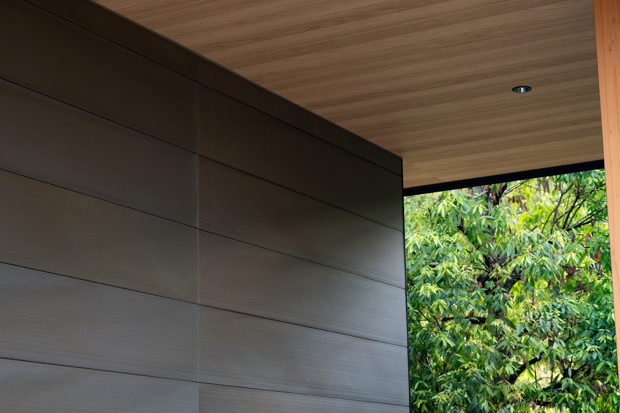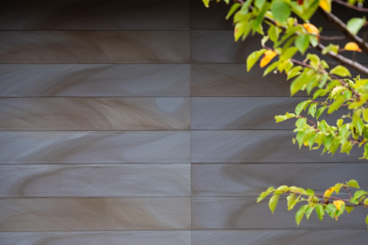 太陽の下では軽やかなグレーに、曇りの日は深みのあるスモーキーな表情に。まるで自然と呼吸を合わせているような外壁材です。