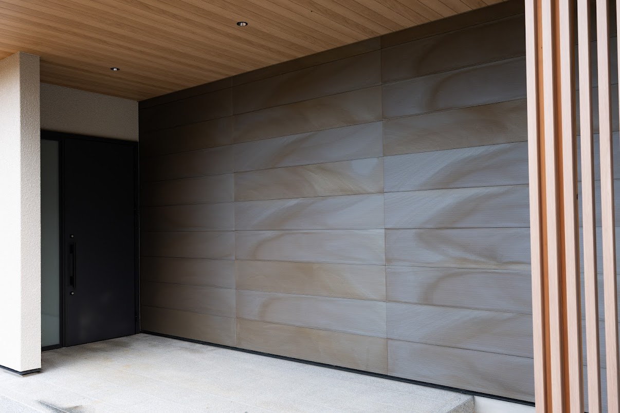 この住まいに採用された外壁材は、私たちの誇る「山河(SANGA)」の中でも、特に自然との相性が美しい“銀河”というカラー。